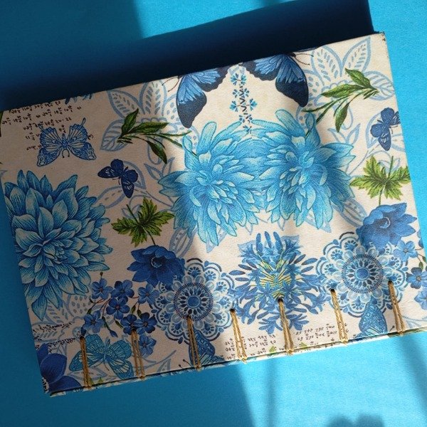 Para los amantes de las flores. Con buena apertura para escribir y llevar a todos lados. Tamaño A5. 60 hojas lisas ahuesadas de 80 gr. Encuadernación belga. Lámina de flores y mariposas